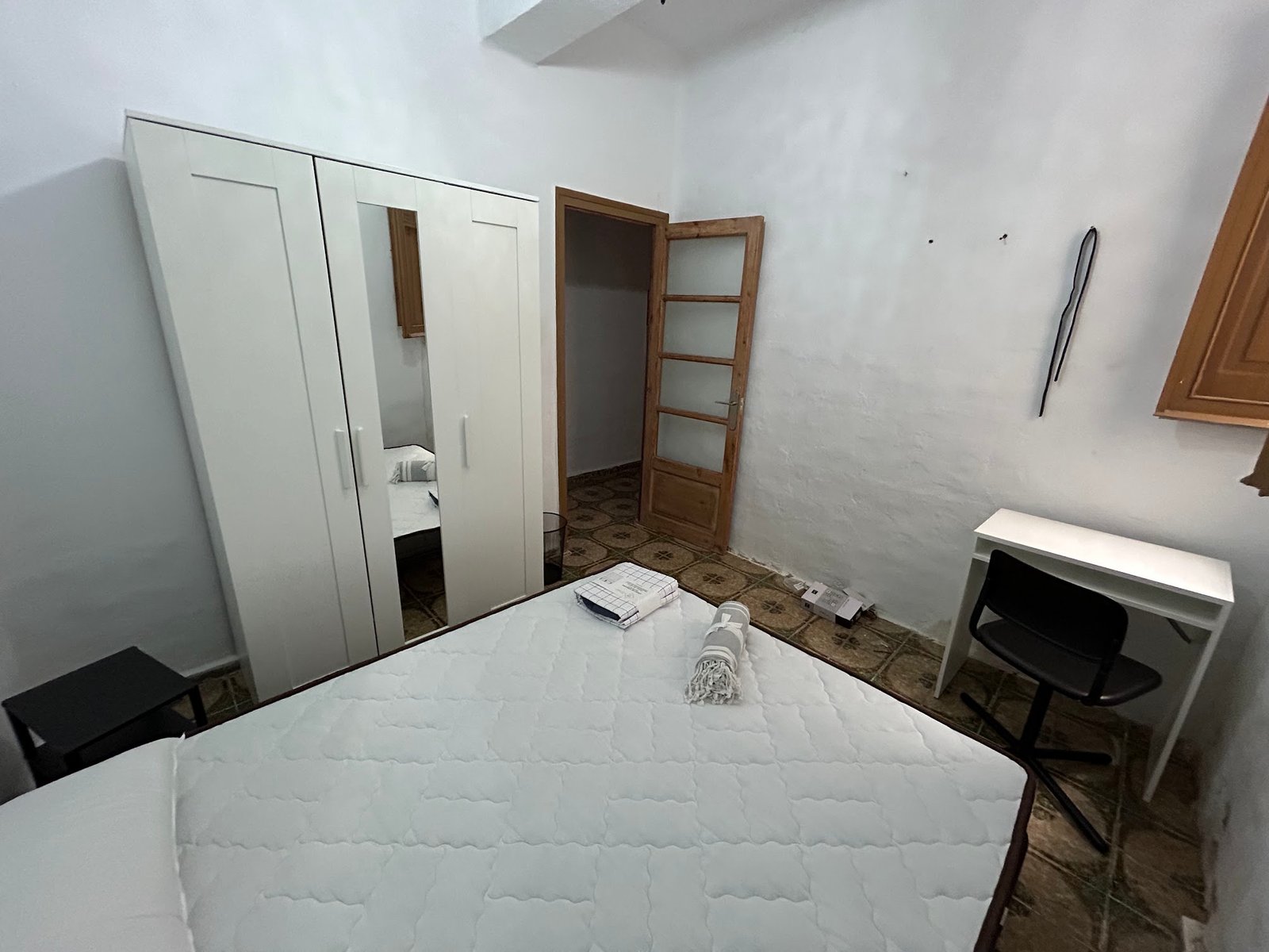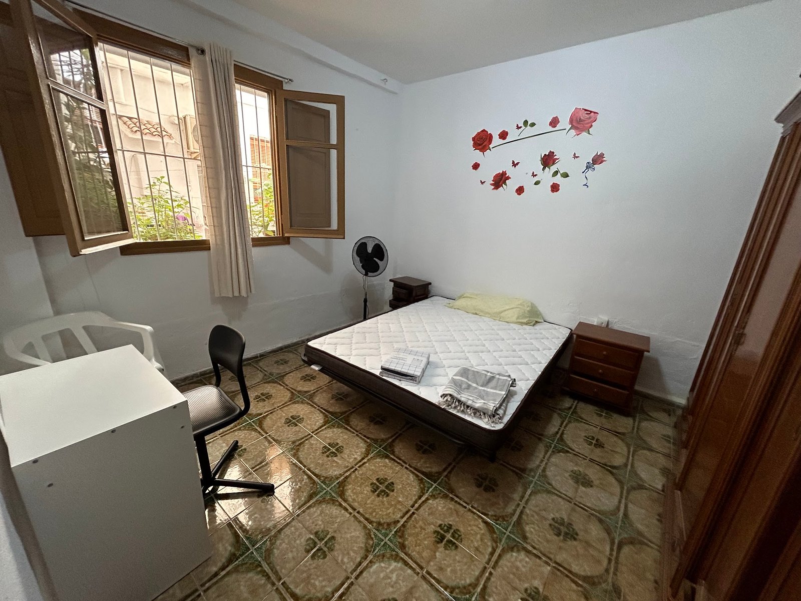 La habitación cuenta con cama, armario, ventilador, mesa de noche y escritorio. Se alquila con contrato de alquiler y seguro de impago.